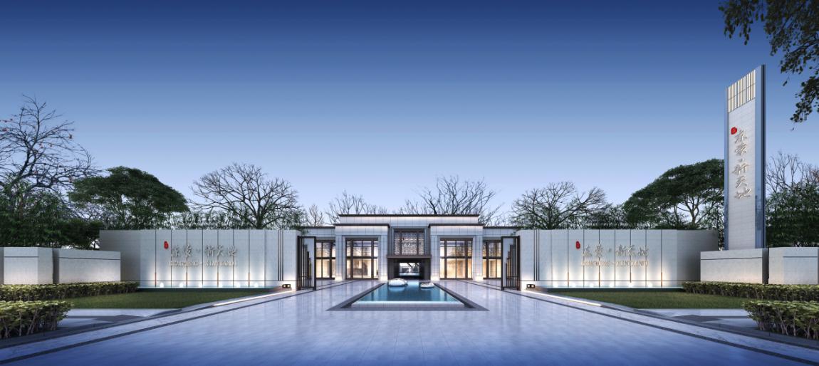開(kāi)敞式大門(mén)設(shè)計(jì),借鑒盛唐時(shí)期的皇家建筑,化繁為簡(jiǎn),植入人文典故,營(yíng)造“東蒙之府,文人之園”業(yè)主如赴文化雅集,觀文人情趣,棲府苑之所。